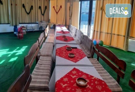 - 1 вечеря с включена салата, основно, десерт, сок, вода, 1/2 бяло или червено вино.Вечерята е по избор/ 5-6 вида/ и се заявява от предния ден;