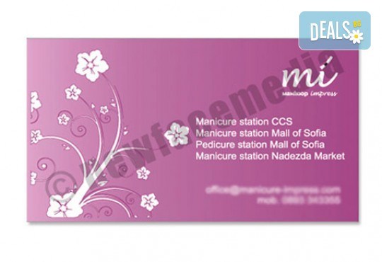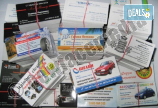 - Печат на 1000 пълноцветни луксозни и двустранни визитки, с една визия;
