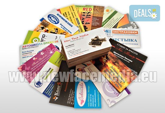 1000 пълноцветни двустранни лукс визитки! Висококачествен печат върху 340 г картон от New Face Media