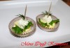 - • 30 бр. филе от пушена сьомга, крема сирене, поръсени с босилек и гарнирани с резанче портокал;