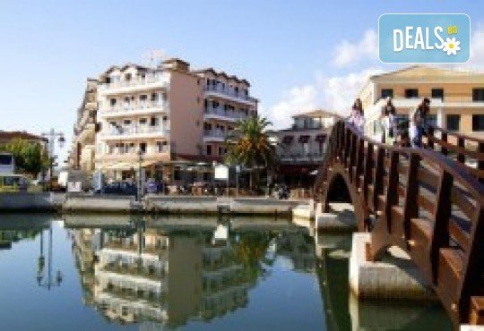 2 ден: Пристигане сутринта. Свободно време в столицата на остров Лефкада (Лефкас). Едноименната столица е построена на естествено пристанище, около което кокетно са наредени кафетерии, ресторанти и магазинчета за сувенири. В спокойния залив лениво се поклащат стотици луксозни яхти. На входа ни посреща романтично мостче, което местните наричат "Мостът на влюбените". Възможност за посещение на крепостта Агиа Мавра.
