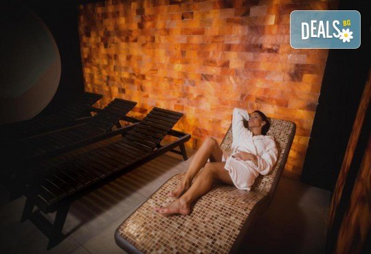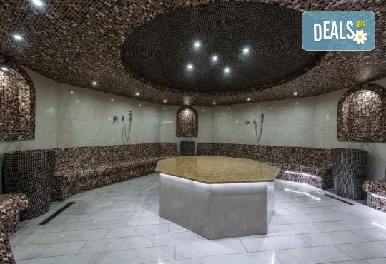 WELLNESS & SPA центъра съдържа: солна стая, турска баня, тепидариум, финландска сауна, инфрачервена сауна, био сауна, хидромасажен басейн (темп. 30-35 градуса), джакузи (темп. 34 градуса), плувен басейн (темп. 27-30 градува), детски басейн (темп. 32 градуса)