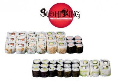 - • Срещу един ваучер предплащате 6.90 лв. (3.53 €) за: 64 суши хапки с пушена сьомга, скариди, филаделфия и авокадо;