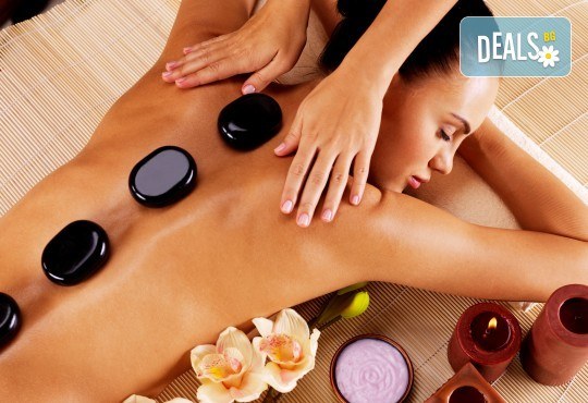 HOT STONE терапия. Няма по-желана процедура от масажа с горещи вулканични камъни, особено в есенно-зимния период. Масажът с камъни е популярен днес като „Стоун-масаж”. Той е опростен вариант на един от най-древните видове масаж, при който специално подбрани камъни се налагат върху определени участъци от тялото, предварително обработени с масла, или с тях се обработват мускулите, ставите, точките, като се използват камъни със специална форма и по индивидуални показания. Камъните се нагряват по специален начин и горещи се налагат върху определени зони и точки или с тях меко се масажира тялото. Нагряванията с камъни са подходящи при стрес, болки, напрежение и блокажи в мускулите, нервите, забавена обмяна на веществата, слабо храносмилане, чести простуди, студени крака, слаби бъбреци (при липса на възпаления). Специалното внимание и уменията на терапевта ще превърнат класическата регулярна процедура в приятно, релаксиращо и ободряващо преживяване в есенните депресивни, влажни дни.