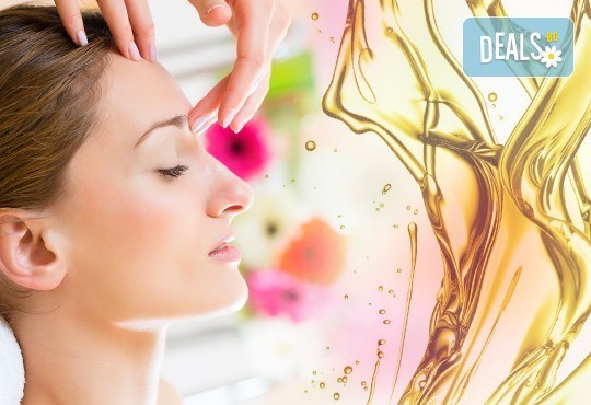 Масаж на лице, шия и деколте с испанско масло със златни частици в Салон за красота Вили