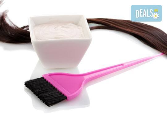 Вашият нов цвят! Боядисване с боя на клиента, терапия с Selective, кератинова терапия с маска + прическа в Студио Хармония