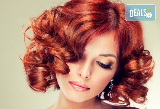 Боядисване с боя на клиента, кератинова терапия и прическа в Студио Хармония-17%