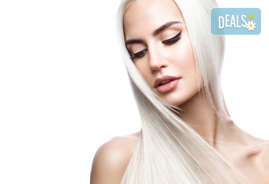 - • Боядисване с професионална боя на салона, масажно измиване, подстригване, подсушаване или прическа със сешоар, според избрания ваучер.