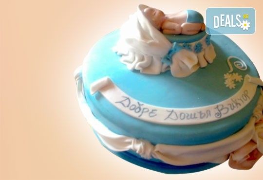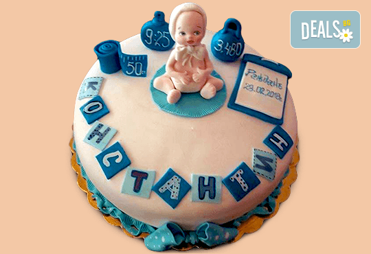 - Tорта за новородено (за изписване от родилния дом), за прощъпулник или за 1-ви рожден ден. Размер и декорация по избор - според избрания вид ваучер
