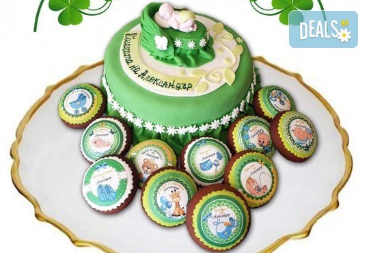 Сладък парти пакет за бебешка погача! Декорирани меденки и мъфини и 12, 16, 20 или 25 парчета торта от Сладкарница Джорджо Джани