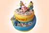25 парчета детска торта (на ДВА етажа) с фигурки от любимо филмче + подарък надпис