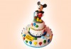 - Торта "Мики Маус" на 3 етажа с пластмасова касичка може да се изработи от минимум 50 парчета.