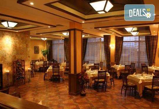 - • Хранене: закуска на блок маса, обяд и вечеря по тристепенно меню или на блок маса в зависимост от броя гости и според избраният ваучер;