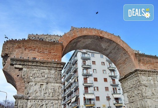 В Солун се пристига преди обяд . Туристическата програма: Панорамна обиколка на града, минава се през Прочутата Бяла кула, макар и преди носела имената Кулата на кръвта и Червената кула, сега отново е Бяла и в нея се помещават интересни музейни експонати от Византийската епоха, паметника на Александър Македонски, Арката на Галер, крепостта, от която се открива възхитителна гледка - много подходяща за снимки и старата част на града. Последната спирка е известната църква "Св. Димитър- един от символите на град Солун. В него се съхраняват мощите на светеца, пострадал мъченически по времето на император Максимиан (292-311г). Днес мощите му се съхраняват в църквата, а подземията са отворени за посетители - реставрирани и учудващо добре запазени. След приключването на туристическата обиколка - Свободно време в центъра на града.
