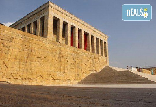 2 ден - Пристигане в Анкара разглеждане на града. Посещение на Мавзолея на Кемал Ататюрк.Възможност за разглеждане на Музея на Анадолските цивилизации, в който се съхранява уникална по рода си колекция от експонати от палеолита и неолита, както и находки, свързани с хетите, с фригийците и с римската цивилизация. Вечеря. Нощувка.