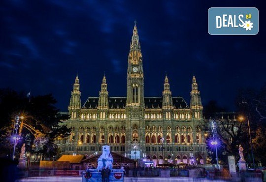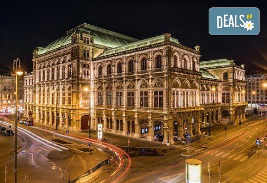 2 ден: Закуска. Отпътуване за Австрия. Панорамна обиколка на Виена с местен екскурзовод( минимум 2 ч. 30 мин.): дворецът „Белведере“ – един от най-хубавите барокови образци в света; Виенската опера, където ежегодно се провежда оперен бал; булевард „Рингщрасе“, изграден на мястото на старата крепостна стена; дворецът „Хофбург“ – зимната резиденция на Хабсбургите, Парламентът със статуята на Атина Палада; Кметството – внушителна сграда в неоготически стил. По желание: разглеждане с местен екскурзовод на двореца "Шонбрун" – лятната императорска резиденция. Пешеходна разходка в центъра на Виена с местен екскурзовод: площад „Мария Терезия“ с паметника на великата императрица и двете сгради близнаци – Музея за история на изкуството и Природонаучния музей; дворецът „Хофбург“, където се намират