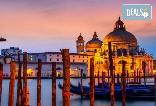 Закуска. Отпътуване за Венеция - от Пунта Сабиони, откъдето с корабче ще пресечем Венецианската лагуна. Пристигане във Венеция и Пешеходна разходка, която включва разглеждане на емблематичния площад "Сан Марко", Камбанарията, Двореца на Дожите (отвън), Базиликата "Сан Марко", Моста на въздишките, Канале гранде и моста "Риалто" и др. Свободно време за разходки с гондоли или водни таксита по Канале Гранде.