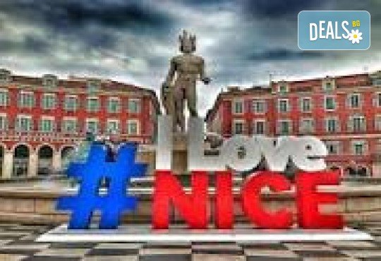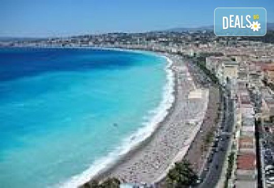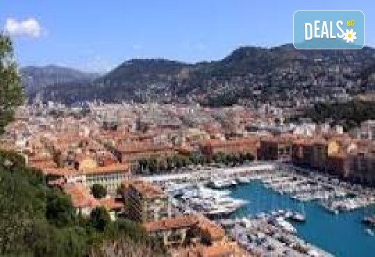 4 ден: Закуска. Туристическа програма в Ница - старият град, съхранил атмосферата и автентичния дух на Средновековието: атрактивният пазар на цветята; най-големият площад Масена& и крайбрежният булевард Променад Де-з-Англе с най-престижните хотели на Френската ривиера. Отпътуване за Кан. Свободно време в Кан-Ла Кроазет (La Croisette) - най-известната и луксозна улица в града, Фестивалният комплекс, където се провежда ежегодния филмов фестивал, алеята на славата и старият град, до който се намира и старото пристанище. Нощувка в района на Ница/ Сан Ремо.