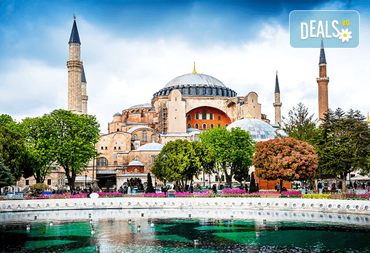Посещение на църквата-музей Света София с лицензиран екскурзовод на български език (входните билети на обектите се доплаща допълнително) - вековен монументален паметник и храм на Пресветата Мъдрост, построен през 6-ти век от император Юстиниан I и получил преклонението на султан Мехмед II Завоевателя. До построяването на базиликата "Св. Петър" в Рим, куполът на Света София е считан за най-големия в света.