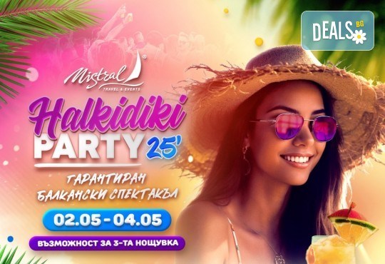 Халкидики: Halkidiki Party 2025 - ГАРАНТИРАН БАЛКАНСКИ СПЕКТАКЪЛ! 2 или 3 нощувки в хотел по избор със собствен транспорт и възможност за организиран от Мистрал Травел