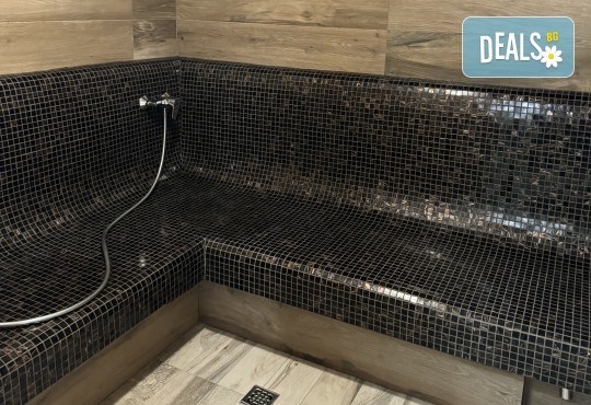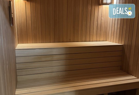 - • Времетраене - 120 минути за 1 човек - 60 минути са общо ползване парна баня/сауна и почивка в релакс зоната и 60 са масаж с добавката;