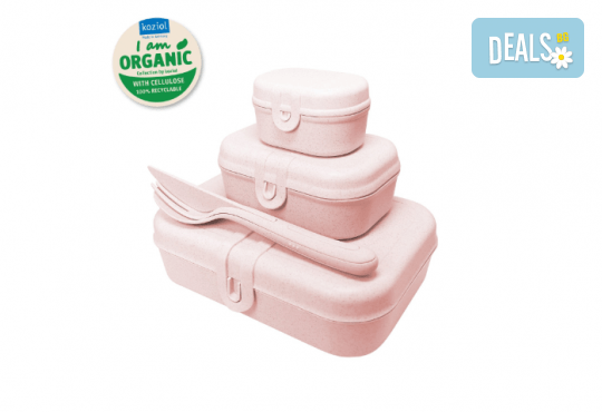 - Комплект кутии за храна PASCAL READY 4 части + комплект прибори за хранене Koziol биоразградими органик