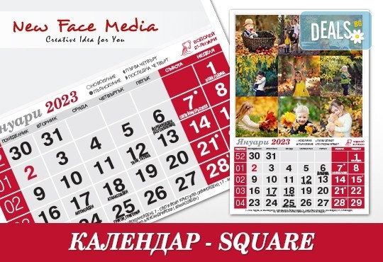 Изберете New Face Media и поръчайте 12-листов календар с модел SQUARE за 2023 г. за Вас и Вашите близки!