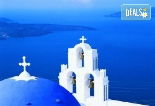 5 ден - четвъртък Нашата първа спирка за деня е най-големият и най-близкият до Северна Африка гръцки остров Крит / гр. Хераклион / (7,00ч - 12,00ч.) На острова се развива Минойската цивилизация (прибл. 3000-1400 г. пр. н. е.) - най-древната цивилизация в Европа. По желание: Екскурзия до Минойския дворец Кносос от първата европейска цивилизация. В 12:00ч отплаваме за остров Санторини (16,30ч - 21,30ч.) - перлата на Егейско море. Пред вас ще изплува неповторимата гледка, извънредната красота, като че родена от въображението на художник. Черен прах, тъмни изрязани отвесни скали в контраст със снежнобели къщи и куполни църквички на фона на лазурно небе и мастилено лилаво море. Можете да видите най-голямата Калдера на морски вулкан с впечатляващи гледки и залези. По желание: Полудневна автобусна екскурзия до селището Оia. Нощувка на круизния кораб CELESTYAL DISCOVERY.