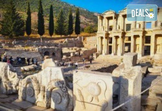 КУШАДАСЪ /KUS-01/ - Къщата на Дева Мария и Античният Град xЕфес с автобус – полудневна. Отправяме се към античния Ефес, известен с Храма на Артемида – едно от 7те чудеса, завършен през 550г.пр.Хр. Строителството на храма с над 100 мраморни колони, е отнело 120 години и поради него, градът е наричан „Слуга на богинята“. Ефес е един от най-известните градове на античността, познал властта на йонийци, лидийци, персийци, римляни и турци. Ще разгледаме част от археологическия комплекс и ще добием представа за блясъка на античния град. Моментално ще разпознаем емблематичната Библиотека на Целзий, Портата на Август, Агората, Одеона, Храмът на Адриан, Театъра, къщите на аристокрацията. Отправяме се към Къщата на Дева Мария. Счита се, че това е последният дом на майката на Исус, където е живяла със