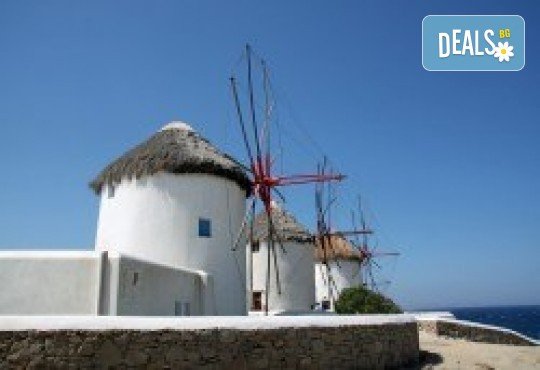 2 ден - понеделник Пристигане на пристанище Лаврион. Настаняване на кораба от 08.00 ч. до 10.00 ч. Първият остров, който ще посетим е остров Миконос с престой от 18,00ч до 23,00ч Веднага ще усетите топлата атмосфера на острова с неговата специфична цикладска архитектура с кубообразни бели къщи, белите тесни улици, изпъстрени с малки кафенета и бутици, вятърните мелници, малката Венеция, и църквата