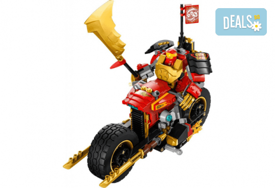 - Нинджа превозно средство – децата и страстните фенове на мотоциклети имат всичко, от което се нуждаят, за да разиграват битки, с комплекта за игра NINJAGO® Роботът нападател на Kai EVO (71783), включващ мотоциклет и робот на нинджа;