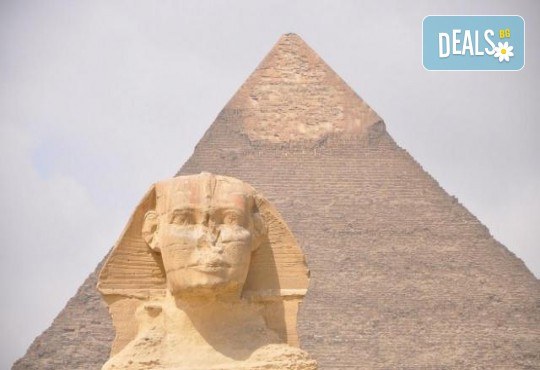 След закуска, ще имате възможността да се насладите на известните пирамиди в Гиза. Пирамидите в Гиза от дълго време са най-посещаваната атракция около Кайро. От времето на тяхното изграждане пирамидите в Гиза въплъщават древността, мистерията и дават повод за невероятни хипотези. Пирамидите са единственото чудо на древния свят, което е оцеляло почти непокътнато. Погребалната голяма пирамида на Хеопс е най-старата в Гиза и най-голямата в света, изградена ок. 2500 г. пр.н.е. от близо 2,3 милиона варовикови блокове, тежащи средно по 2,75 тона и придвижвани от 100 000 роби. Трите по-малки пирамиди в съседство принадлежат на Хеопсовите царици или сестри. Сфинксът е разположен наблизо, странна фигура с тяло на лъв, лице на човек и царска брада.