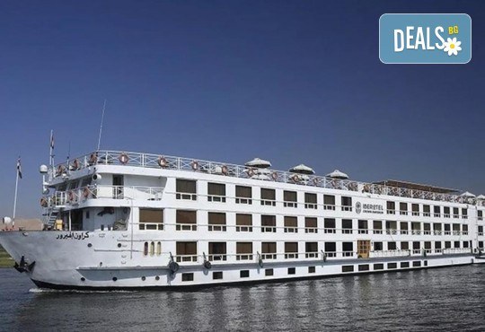 - • 3 нощувки на база пълен пансион – закуска, обяд вечеря на луксозен круизен кораб Iberotel Crown Emperor 5* или подобен от флота на Travco Египет;