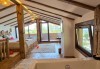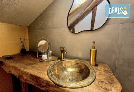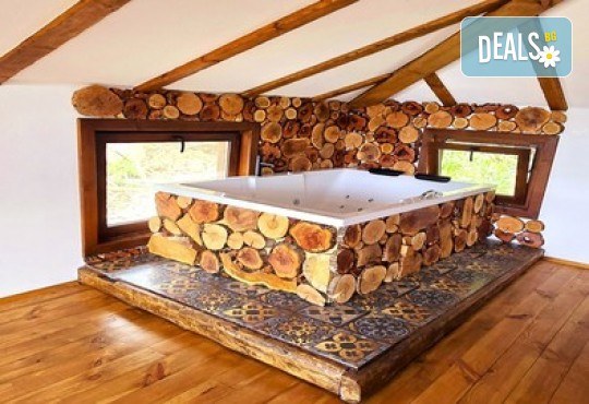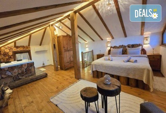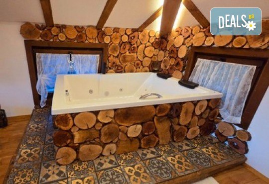 - • Хидромасажна вана в типичния за вилите стил, от която се открива гледка към Пирин;