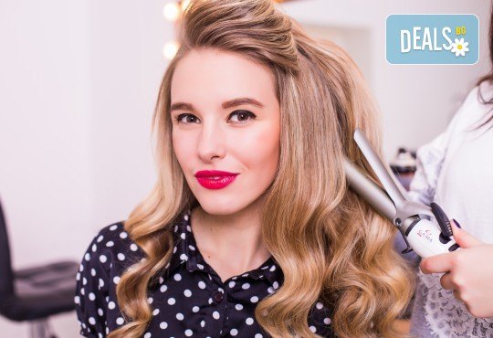 Актуална прическа! Подстригване, масажно измиване с терапия по избор, нанасяне на флуид и прав сешоар или букли в салон Никол