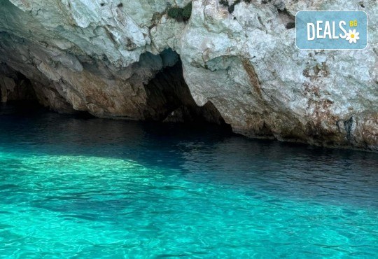 Целодневна комбинирана екскурзия с автобус и круиз, при която ще посетим северната част на острова. Отпътуване с автобус от хотела до плажа Порто Вроми. Ще видим скалите с образа на Посейдон. Круиз до пиратския залив Навагио (Залива на корабокрушенците). Ще видим 40-годишен остатък от кораб, лежащ на красив златен плаж, до който може да се стигне само по море. Ще отделим известно време за снимки на тази великолепна гледка, преди да продължим към следващата ни спирка. Това са прочутите Сини Пещери. Най-ликовото крайбрежие на острова. По време на посещението на пещерите ще направим спирка за плуване и снимки.