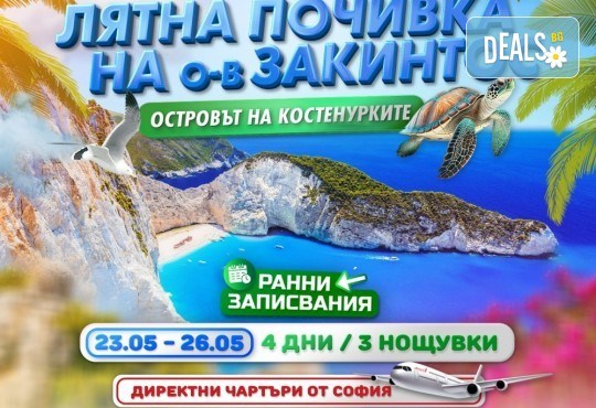 Майски празници на о. Закинтос с директен чартърен полет от София за 3 нощувки, в хотел по избор, от Мистрал Травел