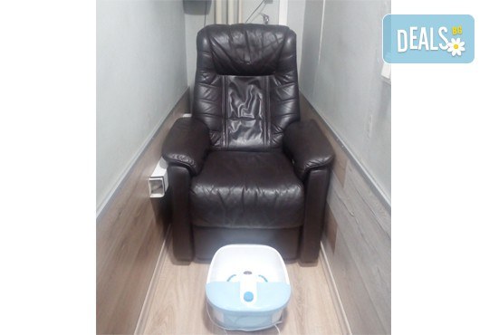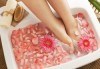 Медицински педикюр с хидромасаж на стъпалата с ароматни соли в студио за красота Ежени