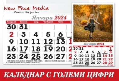 Календар с ГОЛЕМИ цифри модел FAMILY за 2026 г. с Ваши снимки от New Face Media
