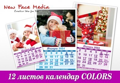 12 листов Календар с 12 Ваши снимки модел АРТ за 2026 г. от New Face Media