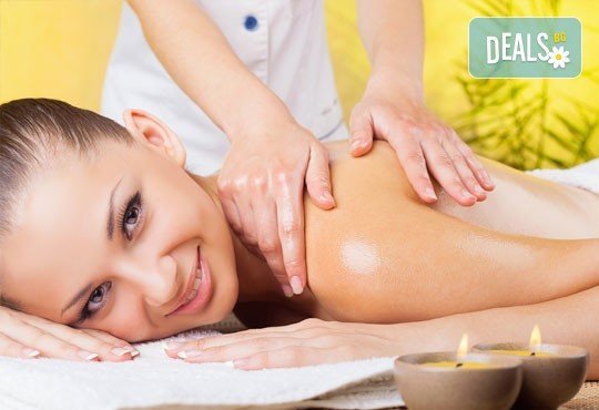 Подарък за Нея! Дълбокотъканен масаж на гръб, врат, рамене и кръст с горещо масло портокал, мед или магнезий за масажи в Салон за красота Вили