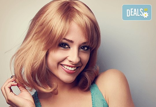 Боядисване с боя на клиента, кератинова терапия и прическа в Студио Хармония-17%