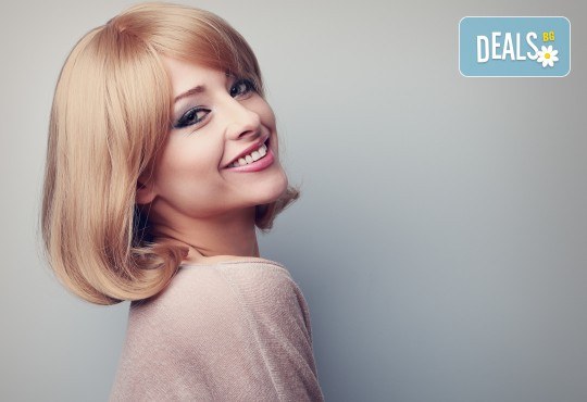 Боядисване с боя на клиента, кератинова терапия и прическа в Студио Хармония-17%
