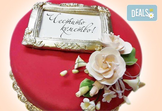 - • Ваучерът включва и надпис "Честито кумство" върху тортата