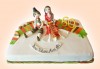 - • Тортата съдържа: италиански крем (ванилов, шоколадов, карамелен или плодов). Може да се направи комбинация от два вида крем в една торта. Фигурки от италианско захарно тесто, моделирани като ръчна арт декорация. Блатовете могат да бъдат какаови или ванилови, според желанието на клиента