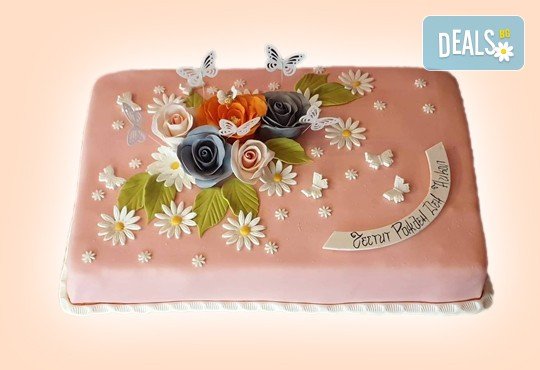 - • Празнична торта "Честито кумство" с пъстри цветя, форма сърце - размер и дизайн според избрания пакет
