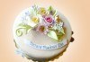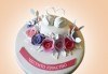 За кумовете! Празнична торта "Честито кумство" с пъстри цветя, дизайн сърце, романтични рози, влюбени гълъби или др. от Сладкарница "Джорджо Джани"