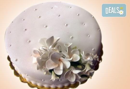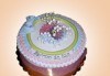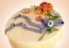 За кумовете! Празнична торта "Честито кумство" с пъстри цветя, дизайн сърце, романтични рози, влюбени гълъби или др. от Сладкарница "Джорджо Джани"