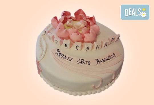 - • Ваучерът включва и надпис "Честито кумство" върху тортата