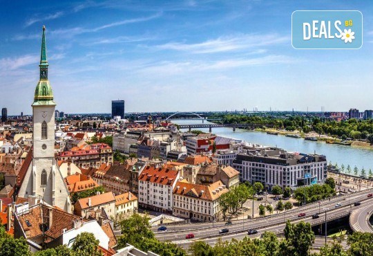 Пешеходна разходка в старата част на Братислава (включена в цената) – Новият мост, катедралата "Св. Мартен", в която е коронована императрица Мария Терезия,Градския площад, Кметството,Архиепископалния дворец /в който са живяли Св. Св. Кирил и Методий/ и кулата „Михалска брана”.
